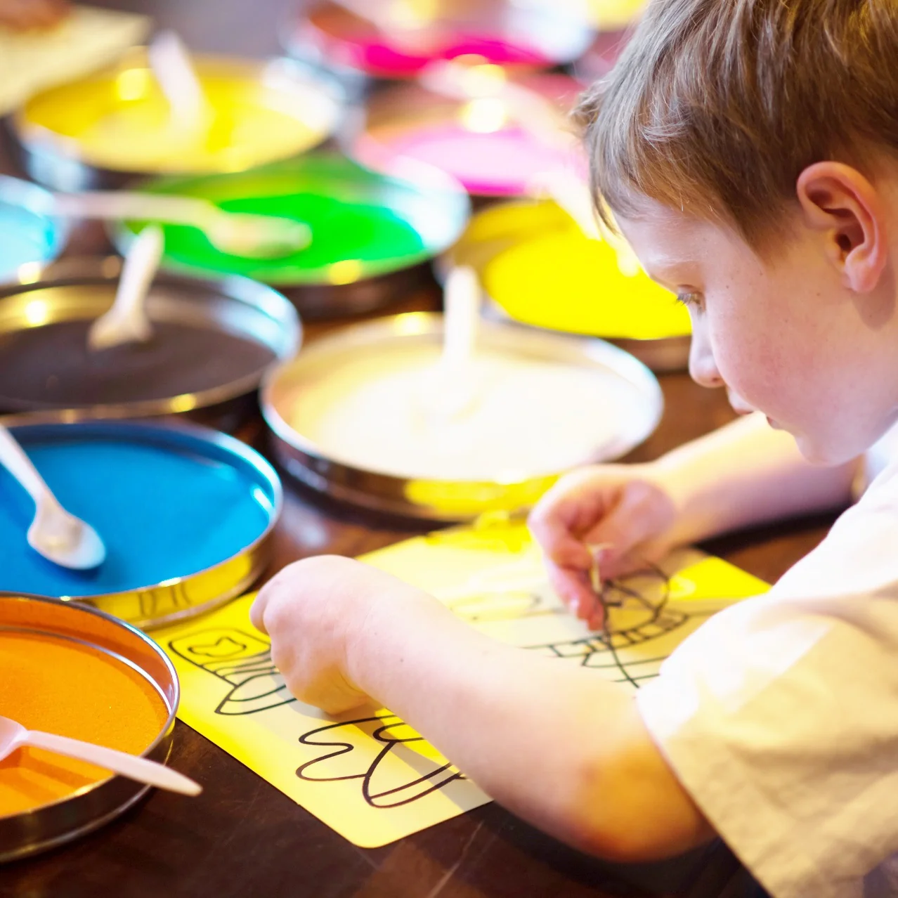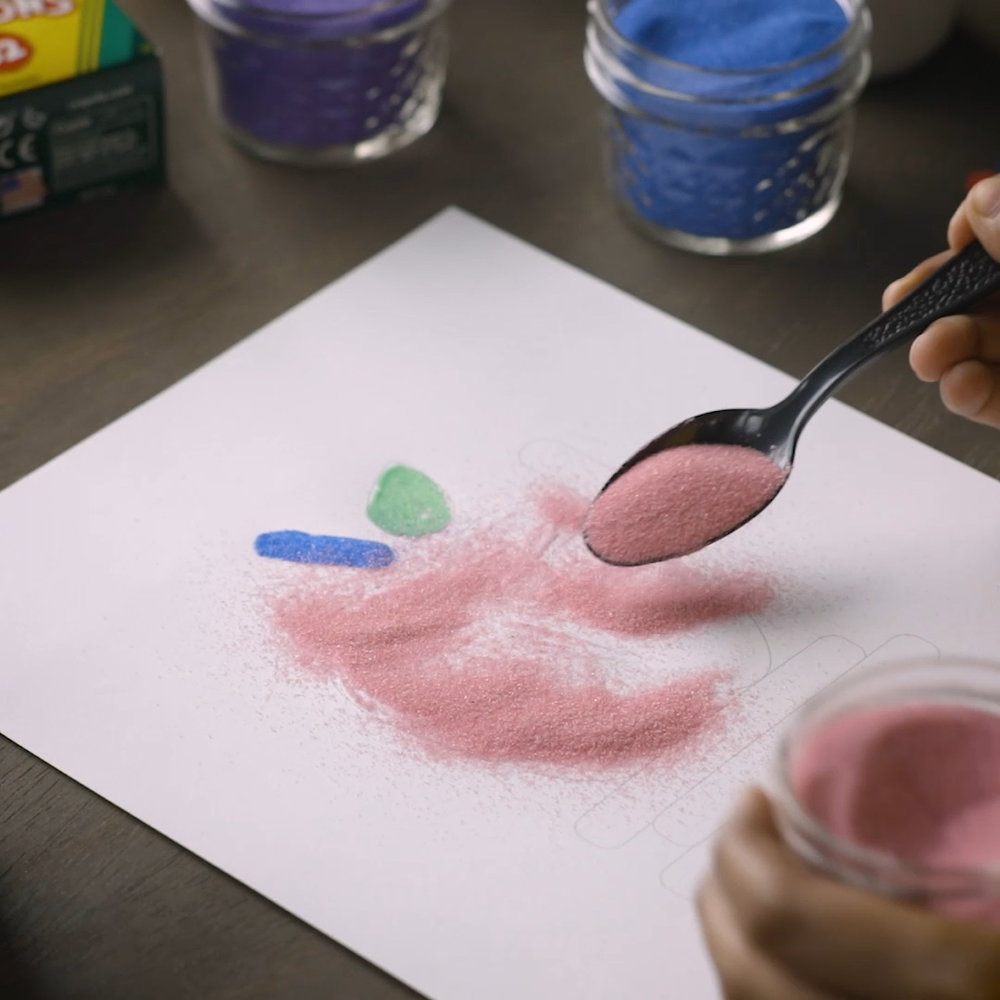 Create a colourful sand art picture with is tactile activity.
